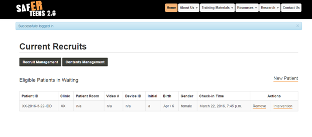 - Log in and you will now see your “patient” in your list of current recruits: