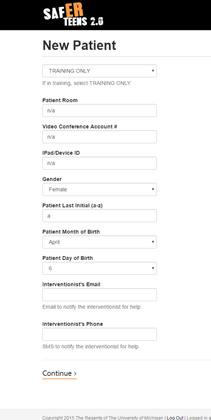 - On the new patient screen, you should type in the following information while you are in training mode (Note: use training mode while practicing. When you are with real patients, you can choose your clinic/hospital):