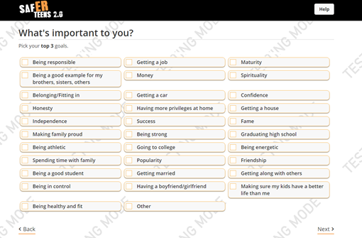 - Feel free to click through the slides and practice delivering the intervention. Notice you can go back and forth, and hit the help screen on each slide to get tips, suggested questions or prompts, and the goal of each page.