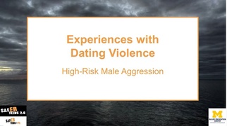 A Male AggressorThe goal of the section is to learn about your patient’s past experiences with dating violence, and elicit and explore how it has or could impact their goals. Length: 7m 07s To watch video, click on the picture to the left of this sentence or click here |