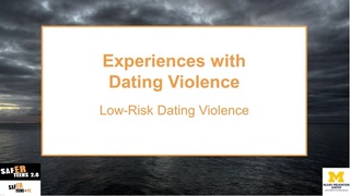 A Patient with Low Risk of Dating Violence (Male)The goal of the section is to learn about your patient’s past experiences with dating violence, and elicit and explore how it has or could impact their goals. Length: 3m 13s To watch video, click on the picture to the left of this sentence or click here |