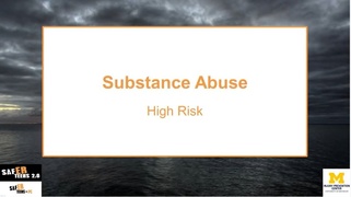 Patient with High-Risk of Substance AbuseThe goal of this section is to learn about your patient's experiences (if any) with substances, and to learn how they view their substance use and its impact or potential impact on their goals. Length: 11m 01s To watch video, click on the picture to the left of this sentence or click here |