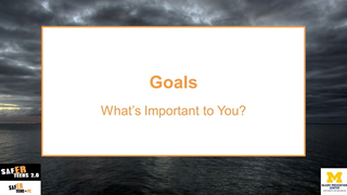 What's Important to You? (Goals/Values)In this section of the intervention, elicit and explore your patient's goals and values. The goal of the section is to build rapport with your patient and affirm positive thoughts and actions. Length: 9m 18s To watch video, click on the picture to the left of this sentence or click here |