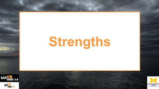 What are you good at? What have you done? (Strengths)In this section of the intervention, elicit and explore your patient's strengths. The goal of the section is to build rapport with your patient and gain trust. Length: 3m 07s To watch video, click on the picture to the left of this sentence or click here |
